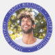 Happy Birthday Modern Simple Elegante Foto Blau Runder Aufkleber