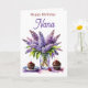 A beautiful personalized birthday card with a pretty watercolor illustration of lilacs and chocolate cupcakes. Inside is a sweet poem for a Nana.