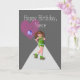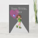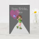 Ein kleines Mädchen auf Skaten. Sie hat langbraunes Haar und rosa und grüne Kleidung. Sie hält einen blauen Ballon. Im Hintergrund ist ein rosa Imitat Glitzer Herz. Eine Geburtstagskarte für Nichte, die Lieben Skate zu rollen.