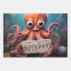 Alles Gute zum Geburtstag Octopus Wrapping Paper Sheet . Oktopus sitzend unter dem Meer mit einem glücklichen Geburtstagszeichen.