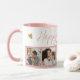 Einzigartige Foto Collage Tasse in rosa personalisiert mit 5 Enkelfotos zum Geburtstag von Großmutter. Eine besondere Tasse für Großmutter.