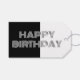 Ein stilvolles Geschenketikett mit minimalistischem Look, in dem die Worte "Happy Birthday" in Op Art Retro Typografie zu sehen sind. Die Tags sind für Ihre eigene Nachricht auf der Rückseite leer.