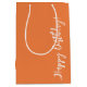 Eine einfache orangefarbene Geschenktasche mit "Happy Birthday" in schicker Schrift ist ein perfektes Accessoire für Geschenke.