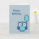 Happy Birthday Owl Blue und Aqua Card Polka Dots Karte
