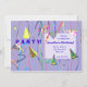 Eine Geburtstagsfeiereinladung mit meinem Design von Party Hüten und Raster auf einem lila Hintergrund.