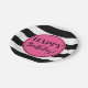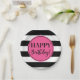 Happy Geburtstag Party Teller in rosa Schwarz-Weiß Streifen Muster.