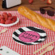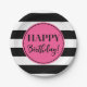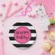 Happy Birthday Party Rosa Schwarz-weiße Streifen Pappteller