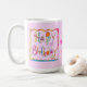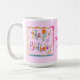 Erzähl jemandem etwas Besonderes "Happy Birthday" oder eine andere personalisierte Nachricht mit dieser Tasse. In dieser Kunst finden Sie die Worte Happy Birthday in beschissenen Briefen, darunter Ballons, Geburtstagskuchen und einen Kuchen in lebhaften Farben. Ein mehrfarbiger Rahmen umgibt die Wörter. Das Bild befindet sich auf einem rosa Hintergrund. Anpassen, um Ihre Nachricht zu personalisieren. Feiern Sie einen Geburtstag oder einen anderen Anlass mit der originalen Kuchen- und Kuchenkunst, die sowohl für Jungen als auch für Mädchen und Erwachsene perfekt ist. Die Farben sind sanfter und lebendiger. Vollständig anpassbar, um personalisiert zu werden.