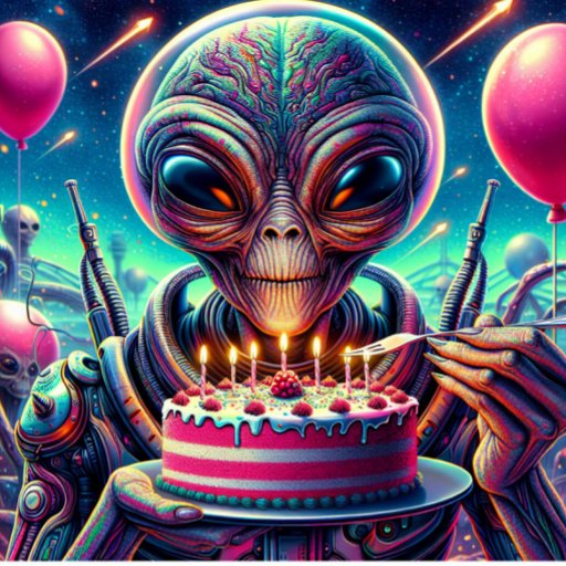 Alien thematisierte das personalisierte Geburtstagsbanner. Ein extraterrestrischer Kuchen mit einem Geburtstagshut auf. Fügen Sie jemandem etwas Spaß zum Geburtstag mit diesem niedliche Geburtstag Party Banner hinzu.