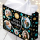 Make your gifts even more special with a custom photo gift bag. This stylish design features a simple pattern of circles and stars, with "Happy Birthday" in a trendy font. You can personalize the template with the recipient's name, age and five of your favorite photos of family, friends and pets! Perfect for milestone birthdays including 18th, 21st, 30th, 40th, 50th and 60th. This allover patterned gift bag comes with your choice of a matte or glossy finish. Printed colors: blue-green teal, gold, black and white, or customize the colors with the design tool.