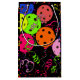 Festliche Geburtstagskarte für einen Pickleball-Spieler mit bunten Konfetti- und Pickleball-Ballons auf schwarzem Hintergrund. Blau, rot, hellgrün, gelb, heiß rosa und Lavendelballons aus Pickleball-Kugeln. Farbenfrohe Geburtstagsgeschenktüte zum Thema Pickleball für Mama, Papa, Onkel, Tante, Bruder, Schwester, Nachbarin, Großmutter, Ehemann, Ehefrau, Freund oder Arbeitskollege, die nicht aufhören, über Pickleball zu sprechen.