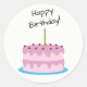 Ein Happy Birthday Aufkleber mit einem rosa Kuchen.