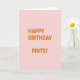 This card keeps things simple with no characters or scenery, letting the message do all the talking. A pale pink background sets a gentle, friendly tone that can read as sweet between close friends or a couple planning a low-key night out 💚. Centered on the front, the all-caps text reads “HAPPY BIRTHDAY PINTS?” in a strong sans-serif style, making it feel like a direct, cheeky invite. The letters are a bright orange that stands out sharply against the soft pink, like a warm toast raised across the table. That question mark adds a flirty nudge, as if one person is leaning in with a grin and the other is already saying yes. There’s no shading or texture, just even, flat color that keeps your eyes on the words and their easygoing tone ☘️. The orange headline sits neatly in the middle of the pale pink field, with generous empty space all around it.