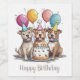 Niedliche Illustrationen von amerikanischen Pit Bull Terrier Hunden, die ein Geburtstagsfest feiern. Ideal für Liebhaber und Hundeeltern.