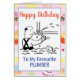 Klempner und Klempner Cartoon. Klempner arbeitet in einer Flut und wird von einem Fisch beobachtet. Personalisieren Sie Ihre persönlichen Daten und Ihre Nachricht. Cupcake-Design. Geburtstagskarte für einen Klempner.