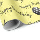 Herzlichen Glückwunsch zum Geburtstag mit schwarz-weißen Polka Dot Ballons auf gelbem Hintergrund. Text kann bearbeitet werden. Die Hintergrundfarbe kann geändert werden.