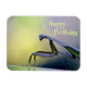 Dieser glückliche Geburtstagsmagnet verfügt über eine freundliche Gottesanbeterin, die für sein Portrait posiert.