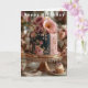 Happy Birthday card with a beautifully decorated cake with pink and black frosting and pink Roses and Peonies served on an elegant gold cake dish. There are vases of Peonies and frosted cupcakes. "If anyone calls you old on your birthday, don't worry about it. Just hit them with your cane and throw your dentures at them."