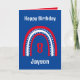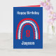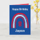 Rainbow Birthday Card in Red White and Blue. Kann personalisiert werden, indem Sie auf die "Personalize"-Eingabeaufforderung klicken.