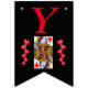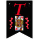 Diese Flagge geformt Happy Birthday Banner ist schwarz mit einer verzierten Herz-Königin spielen Karte mit Reihen von roten Herzen auf jeder Seite der Karte. Passen Sie das Geburtstagsjahr mit den Vorlagen an.