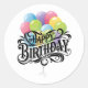 Happy Birthday Retro Card Balloons Runder Aufkleber