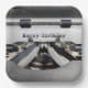 Extrem nahes Aufsetzen einer altmodischen Schreibmaschine mit "Happy Geburtday"-Text in gekürztem Schriftart.