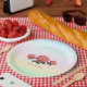 Herzlichen Glückwunsch zum Geburtstag Rose Blume auf pastellfarbenen Hintergrund Papier Plate. Text kann angepasst werden.