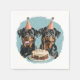 Niedliche Darstellung von Rottweiler-Hunden, die zum Geburtstag verkleidet sind. Perfekt für Liebhaber von Haustieren oder Hundeeltern!