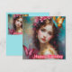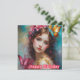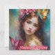 Eine Geburtstagskarte für eine schöne junge Frau. Die Grüße auf der Karte sind "Happy Birthday". Auf der Rückseite der Karte ist eine kleine Version des vorderen Bildes, und viel Platz, um eine Nachricht zu schreiben. Made mit der Unterstützung von AI Bing.