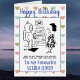 Scuba Diver Cartoon. Taucher tragen Tauchausrüstung, um Fisch in seinem Aquarium füttern. Personalisieren Sie mit Ihrer Wahl des Wortlauts und der Insider-Nachricht. Geburtstagskarte für Taucher, Taucher oder PADI-Tauchlehrer von einer Tauchschule.
