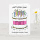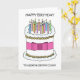 A simple illustration of a white cake covered in multi colored lit candles and accompanied by the words 'Happy Birthday to a special second cousin'. The image is set against a white background.
