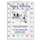 Geburtskarte des Sekretärs. Sekretärin verlasse früh, weil sie nicht ganz so spät ankam. Personalisieren Sie Ihre persönlichen Daten und Ihre Nachricht.