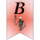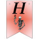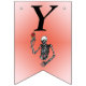 Diese Fahne geformt Banner Happy Birthday Banner ist rot in der Mitte verblassen zu pink mit einem Skelett mit einem Single rote Rose auf einem Stamm über seinem Kopf. Passen Sie den Geburtstagstext und das Geburtstagsjahr mit den Vorlagen an.
