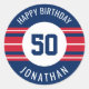 Happy Birthday Sports Jersey Streifen Name und Alt Runder Aufkleber