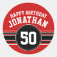 Happy Birthday Sports Stripes with Age - Red Black Runder Aufkleber
