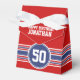 Rot, Weiß und Blau - Dieses sportliche und Rennstreifen-Design ist perfekt für jeden Sportler, der Hockey, Fußball, Fußball oder Baseball spielt. Sie ändern die Zahlen in Ihre Glückszahl oder sogar ein spezielles Alter für eine Geburtstagsfeier. Ein robustes und männliches Design mit einem Bereich für jedes Jubiläumsdatum - 5., 50., 70. oder anderes!