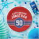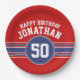 Happy Birthday Sports Stripes with Age - Red Blue Pappteller