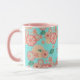 Alles Gute zum Geburtstag - Frühlingspieß Blume Gartenhandgezeichnetes Muster, Dekoration, Boho-chic Stil. Blumendekoration. Elegante Pony, blühende Sakuras, Laternen und Frühlingsblumen, Pfauenfliegen, Gold, Türkis, Rosa, türkisfarbener Vintager Hintergrund mit Glückssymbol, Kunst. Trendy Design mit Textvorlage, für Zuhause > Küche & Dining > Trinkbehälter > Tasse & Cups, Geburtstag, Jahrestag, Chinesisches Neujahr. Feriengeschenk, Dekoration. Vorlagen für Personalisierte Elemente anpassen, indem Sie Text, Datum und Namen hinzufügen