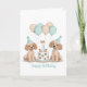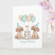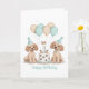 Niedliche Cartoon-Abbildung von Standard Poodle Hunden, die einen Geburtstagskuchen und Ballons umgeben. Ideal für Liebhaber von Haustieren oder Hundeeltern.
