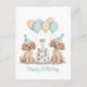 Niedliche Cartoon-Abbildung von Standard Poodle Hunden, die einen Geburtstagskuchen und Ballons umgeben. Ideal für Liebhaber von Haustieren oder Hundeeltern.