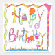 Der Geburtstagsaufkleber "Happy Birthday" ist mit handgezeichneter Whimsy-Kunst mit Ballons, einem Kuchen und Geburtstagstorte ausgestattet. Die glücklichen Geburtstagsworte sind von einer wackeligen Grenze umgeben.