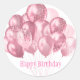 This small size round sticker is shown with a festive Happy Birthday balloons print.