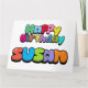 Farbenfroher "Happy Birthday Susan" Bublegum-Text.