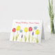 Ein farbenfroher Geburtstag einer süßen Schwester mit Frühlingsblumen mit gelben und roten Tulpen, blühendem Flachs und Traubenhyakinthen. Fröhliche Geburtstagskarte, um deine Schwester lassen, dass du an sie an ihrem besonderen Tag denkst!