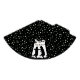 Dieses personalisierte Party ist schwarz mit weißen Polka-Punkten mit zwei schwarzen Bären, die im Gras tanzen, mit einer Eule auf einem Baumzweig über dem Betrachten. Passen Sie den Geburtstagstext von Happy mit der Vorlage an.