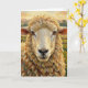 A cute birthday card for anyone with an adorable impasto style sheep on an old rustic farm looking at you. Inside a cute Sheep pun, "Happy Birthday to Ewe."