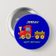 Happy Birthday, Toy Train Birthday Button. This is a template, substitute your own child's name. from BIRTHDAY GIFT STORE at www.zazzle.com/birthdaygiftstore for unusual and creative gifts.