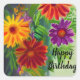 Happy Birthday Vibranly farbenfrohe Frühlingsblume Quadratischer Aufkleber