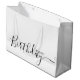 Diese große Geschenktasche bietet elegante Happy Birthday Typografie in schwarz auf weißem Hintergrund.