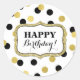 Happy Birthday White Black Gold Confetti Runder Aufkleber